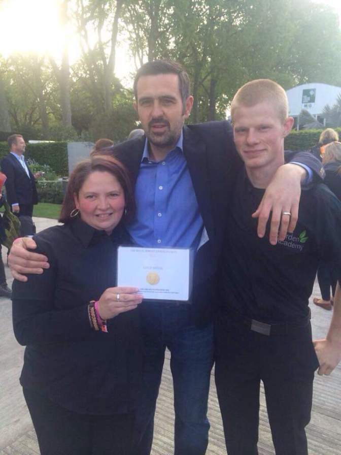 The culmination of blood, sweat and tears, all comes down to what colour medal will be presented to the designer, by the Royal Horticultural Society (RHS). Again, I never really appreciated the significance of this until now; understanding the work that goes in and that this medal represents a judgement and recognition of those efforts. For Adam Frost, having won six RHS Gold medals before, some might say it’s a foregone conclusion that another Gold is only to be expected. That’s not the case. Being at the very top of your game, comes with the added pressure of not only maintaining it, but each time, having to create something better and go beyond the pinnacle. I’m pleased to say that Adam Frost’s Homebase Urban Retreat Garden 2015, was awarded an RHS Gold medal!!! Needless to say it came as a shock during our graduation from the Homebase Garden Academy, later that year, when we were all presented with an RHS Gold medal, for our part we played in the build team. This would be my very first Gold medal and one I will treasure forever. Back at the showground and it was time to celebrate with a visit during the final public show day and the famous sell off.